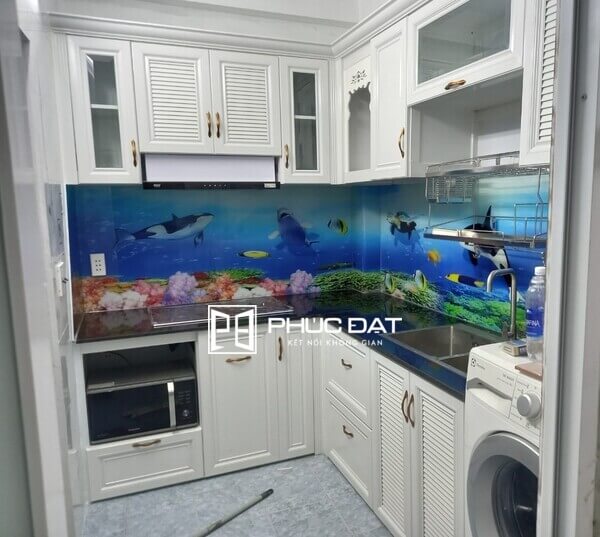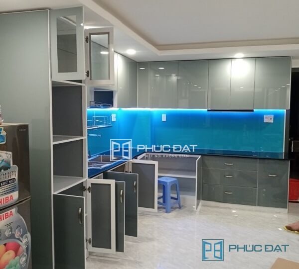 - tủ bếp nhôm kính màu