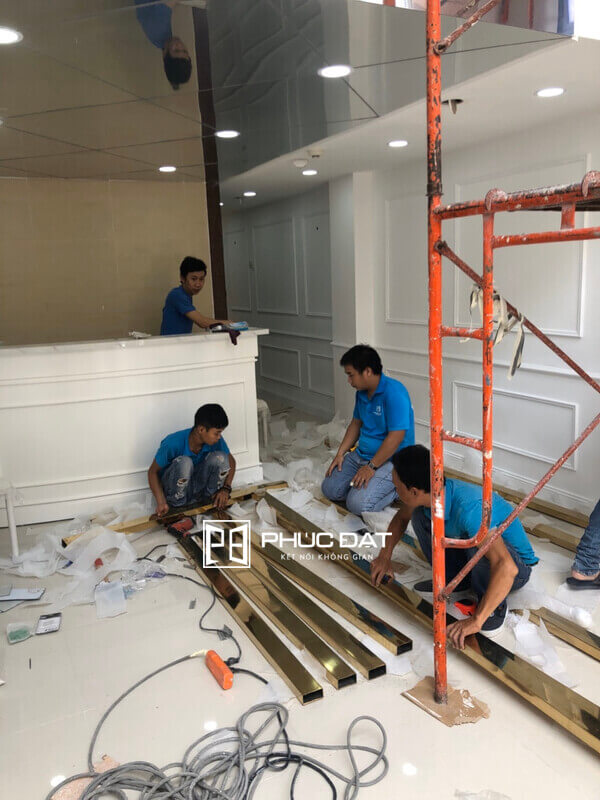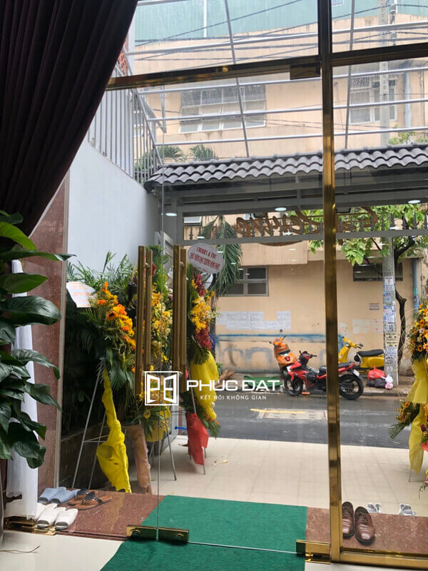 Công trình cửa kính khung inox mạ vàng được đội ngũ Nhôm Kính Phúc Đạt thi công cho mặt tiền nhà ống làm spa tại TPHCM. Cửa kính hiện đại sang trọng kết hợp với khung inox mạ vàng bóng gương đem lại nét đẳng cấp cũng như cao cấp cho nội thất. Sản phẩm đặc biệt thích hợp cho các dạng nội thất kinh doanh spa, dịch vụ có trải nghiệm cao cấp.