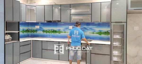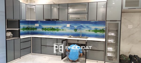 Hạng mục: tủ bếp nhôm Omega cánh hợp kim.